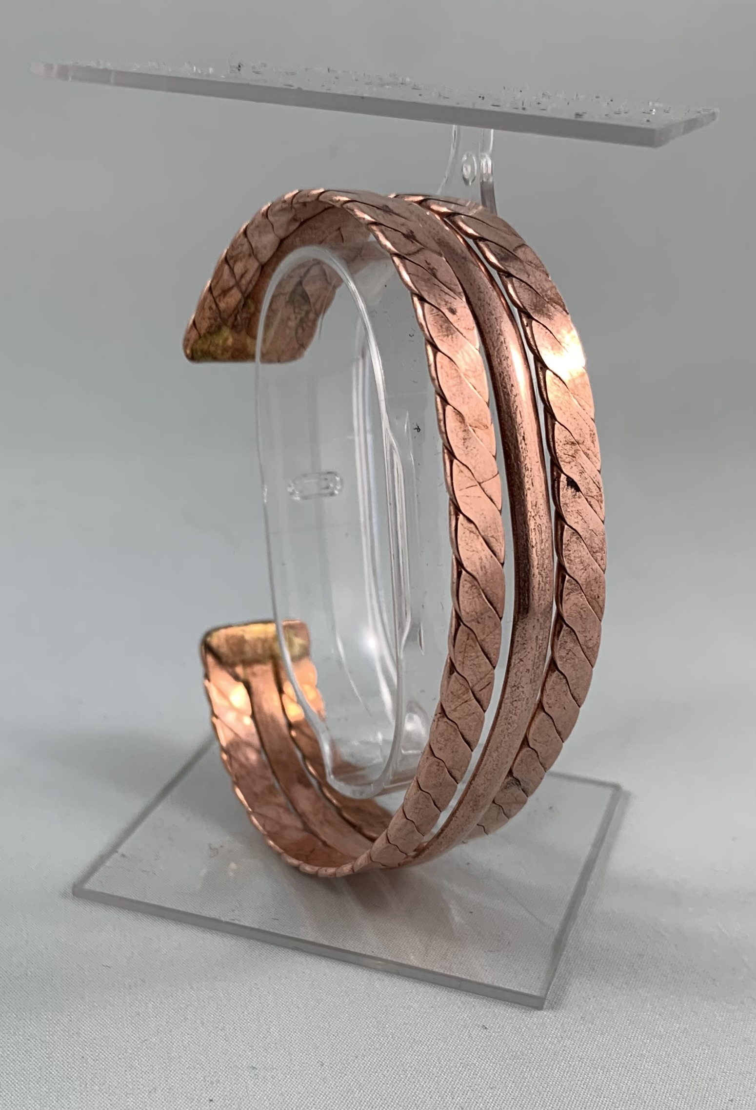 Understated and sophisticated, this copper cuff features clean, grooved lines that reflect refined simplicity. The brushed copper finish adds depth and texture, making it a versatile accessory for both casual and formal attire. A timeless piece for those who value craftsmanship and quality.