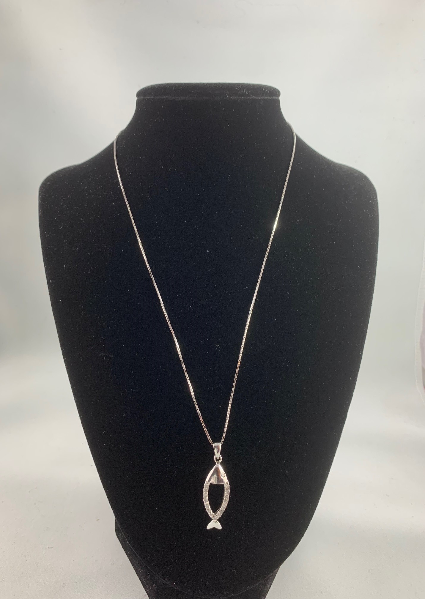 A meaningful symbol of faith, this 18″ sterling silver box link chain necklace features an Ichthys fish pendant featuring Cubic Zirconias. It represents Christian spirituality and strength. The polished design is both simple and powerful, making it a perfect everyday piece or a thoughtful gift for a loved one.