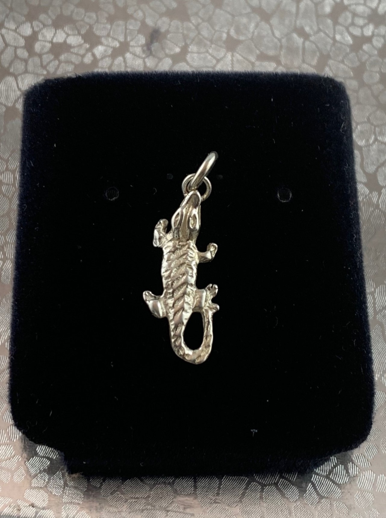 | This sterling silver alligator pendant captures the raw strength and resilience of the wild. An eye-catching addition to any collection. |