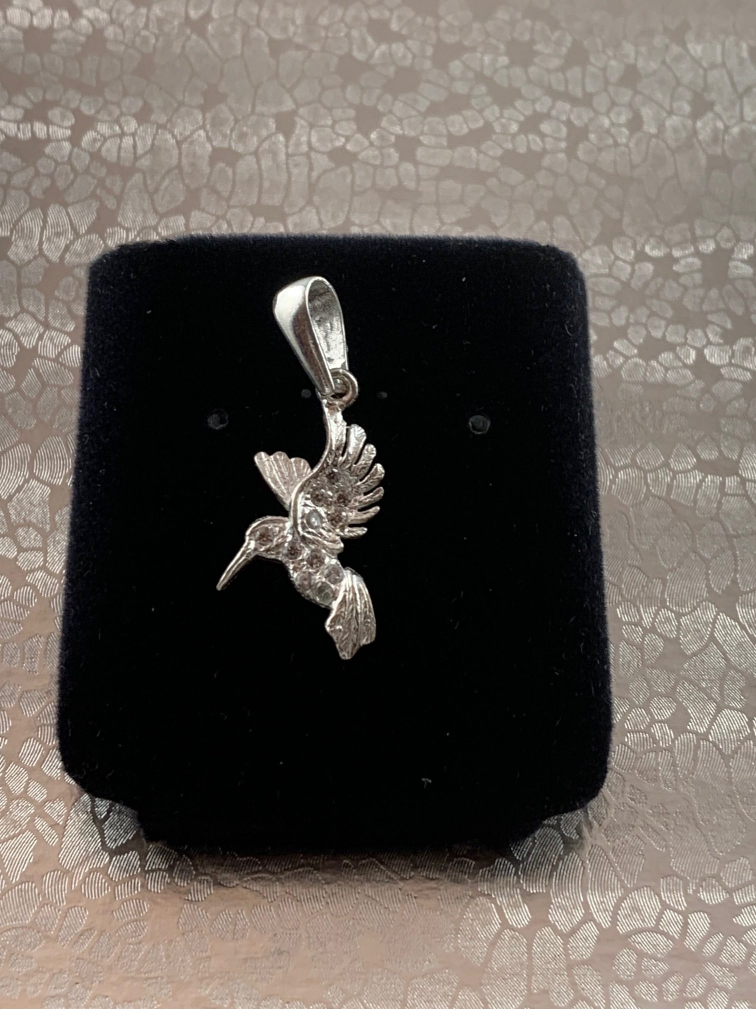 | A graceful sterling silver hummingbird in flight, symbolizing joy and resilience. Its delicate detailing makes it a stunning addition to any jewelry collection. |