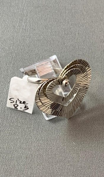 Romance meets craftsmanship in this stunning triple heart ring. Designed with overlapping-movable textured hearts, this ring is a symbol of love and connection. The shimmering diamond cut silver finish enhances its elegance, making it a thoughtful gift for a loved one or a special addition to any jewellery collection.
